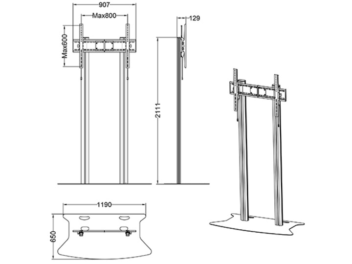 VESA 800x600, Höhe 2100 mm,Metall/Aluminium