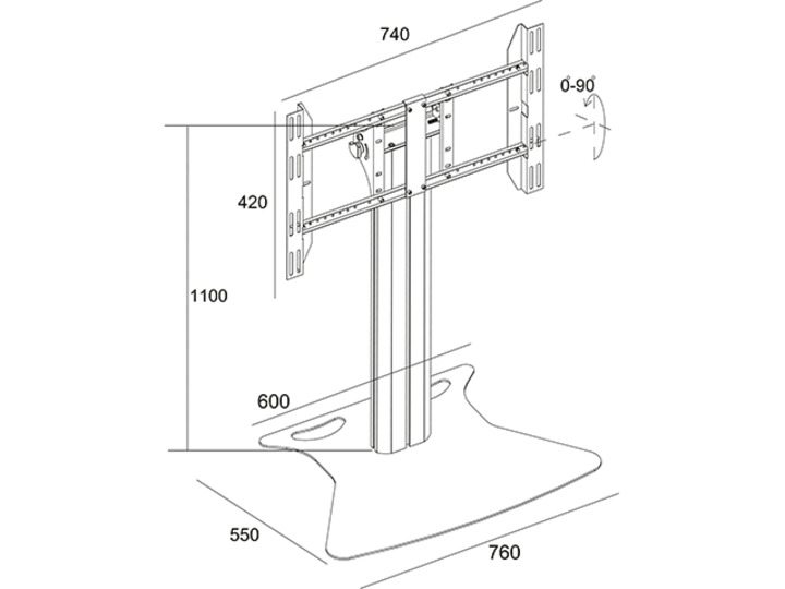 VESA 700x400, max. 90 kg, Höhe 1100 mm