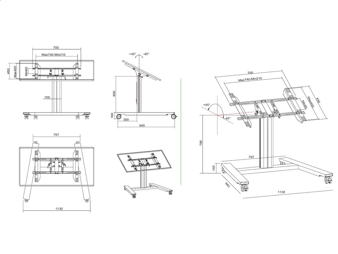 VESA 700x400, max. 60 kg, neigbar 0° - 90°