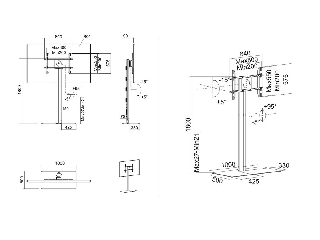 VESA 800x400, max. 60 kg, Höhe 1800mm,