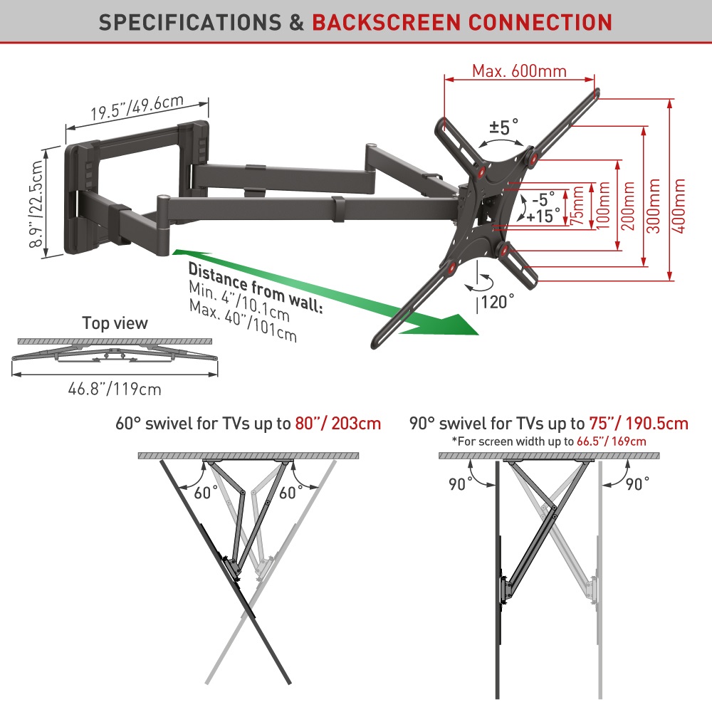 Tragkraft 50 kg, VESA 75x75-600x400