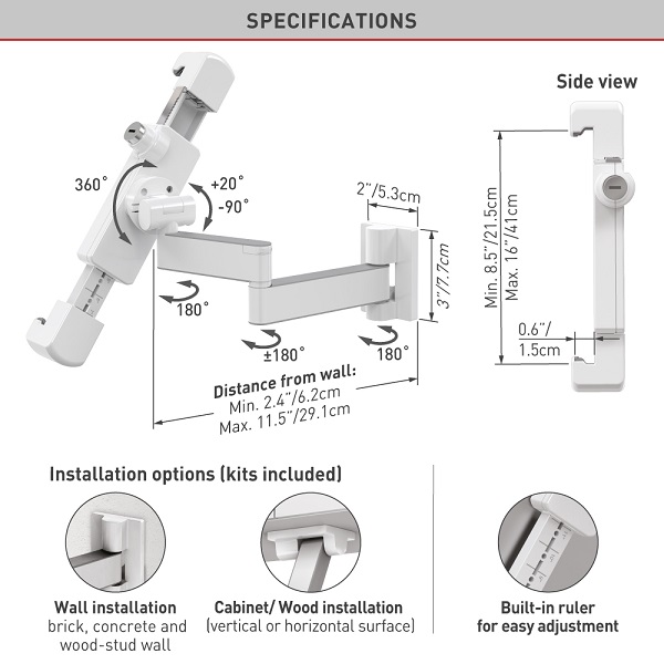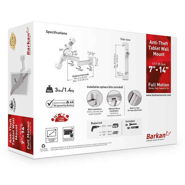 Tablet Wandhalter 7-14" , abschliessbar, weiss
