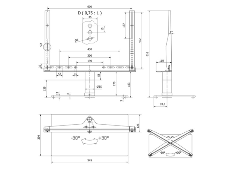 VESA Normen bis 600x600, schwenkbar 45°,