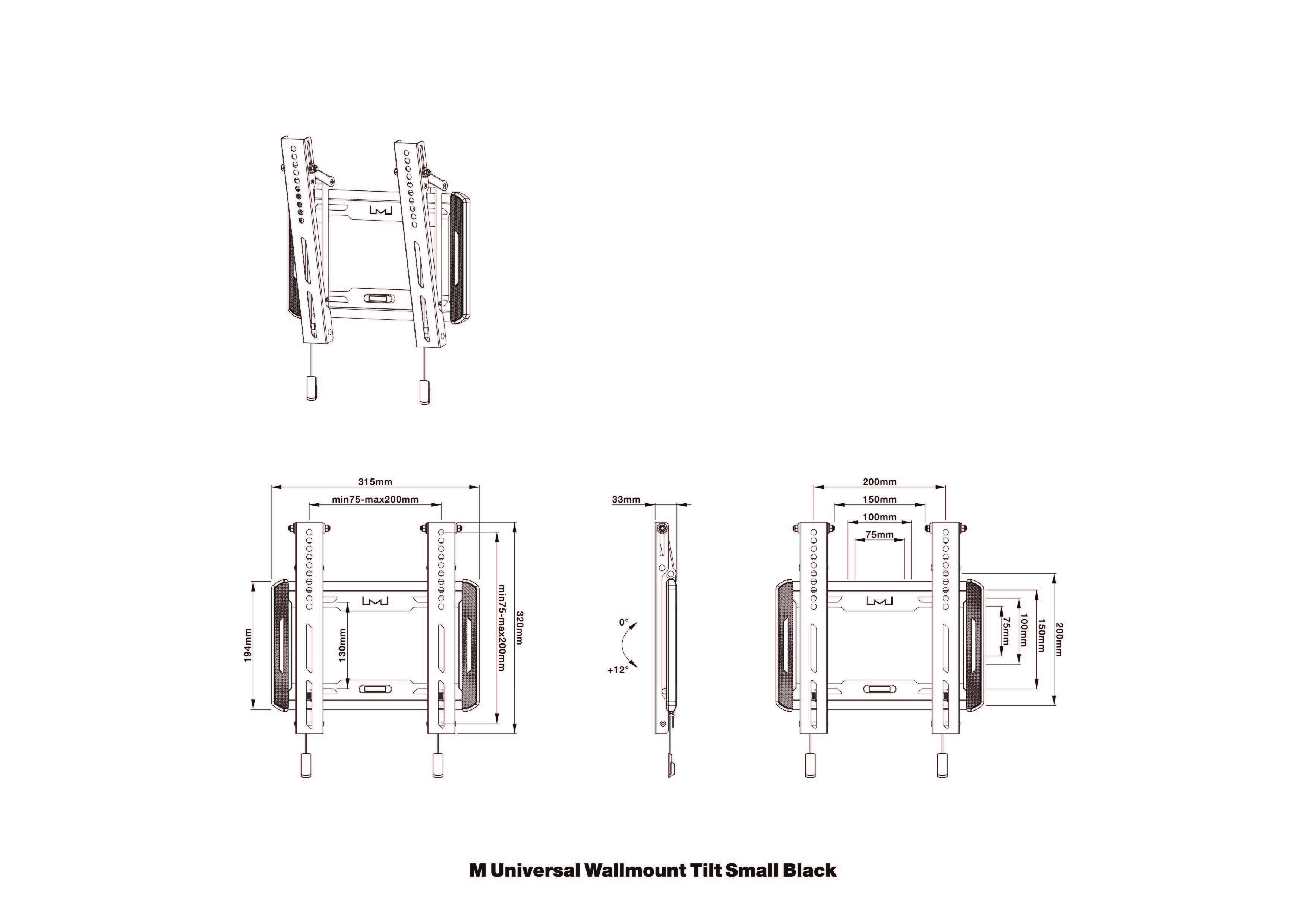 Wandhalter 24-55", Metall, schwarz, max 50 kg