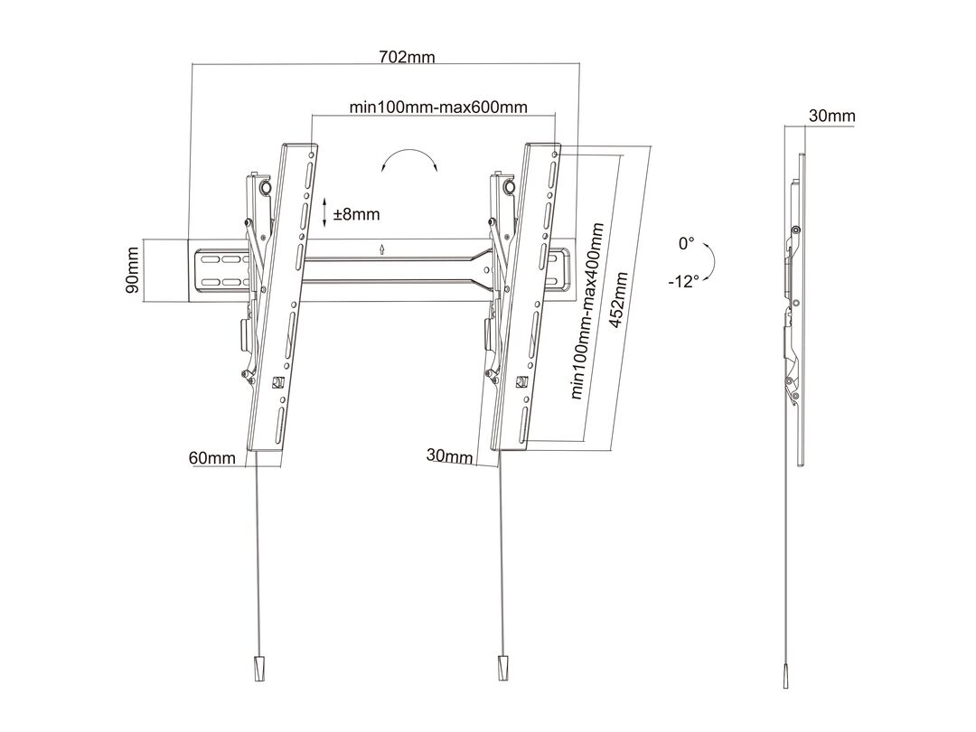 Metall, VESA 100x100-600x400, Super Slim