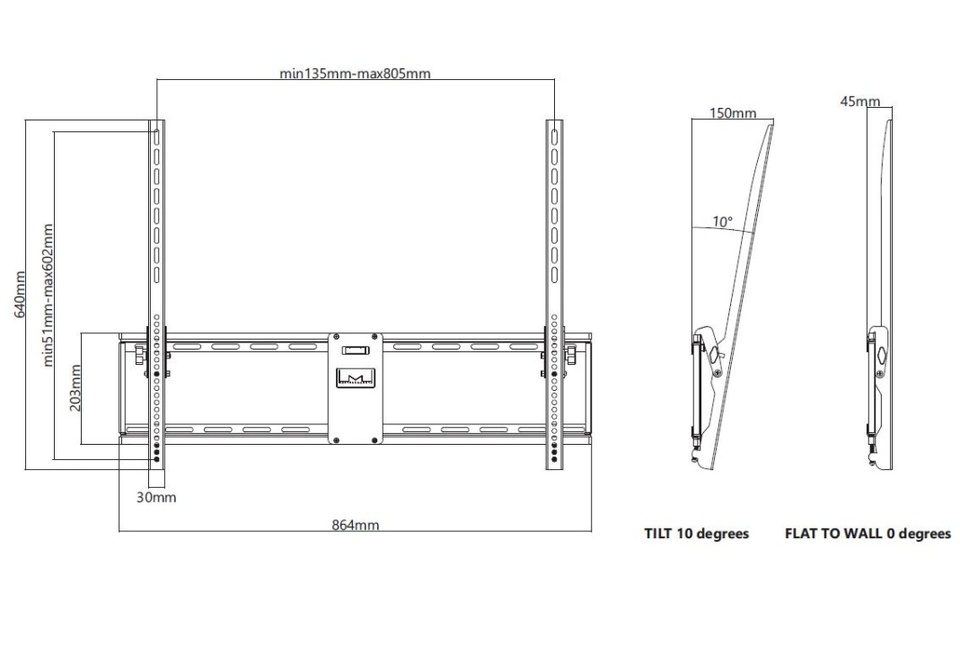 45-148 mm, neigbar max 10°, inkl. Montageset