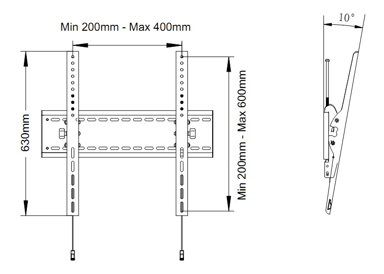Metall, VESA 200x200-800x600, neigbar 10°