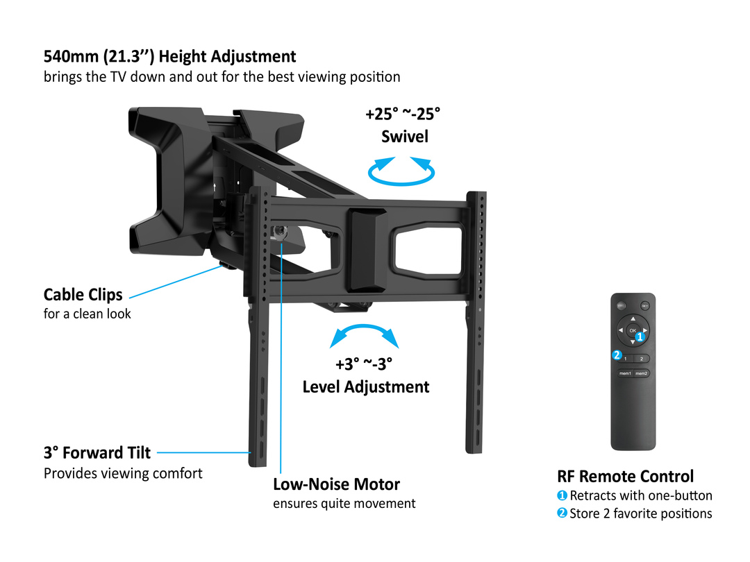 Metall, VESA 200x100- 600x400, RF-Fernbed.