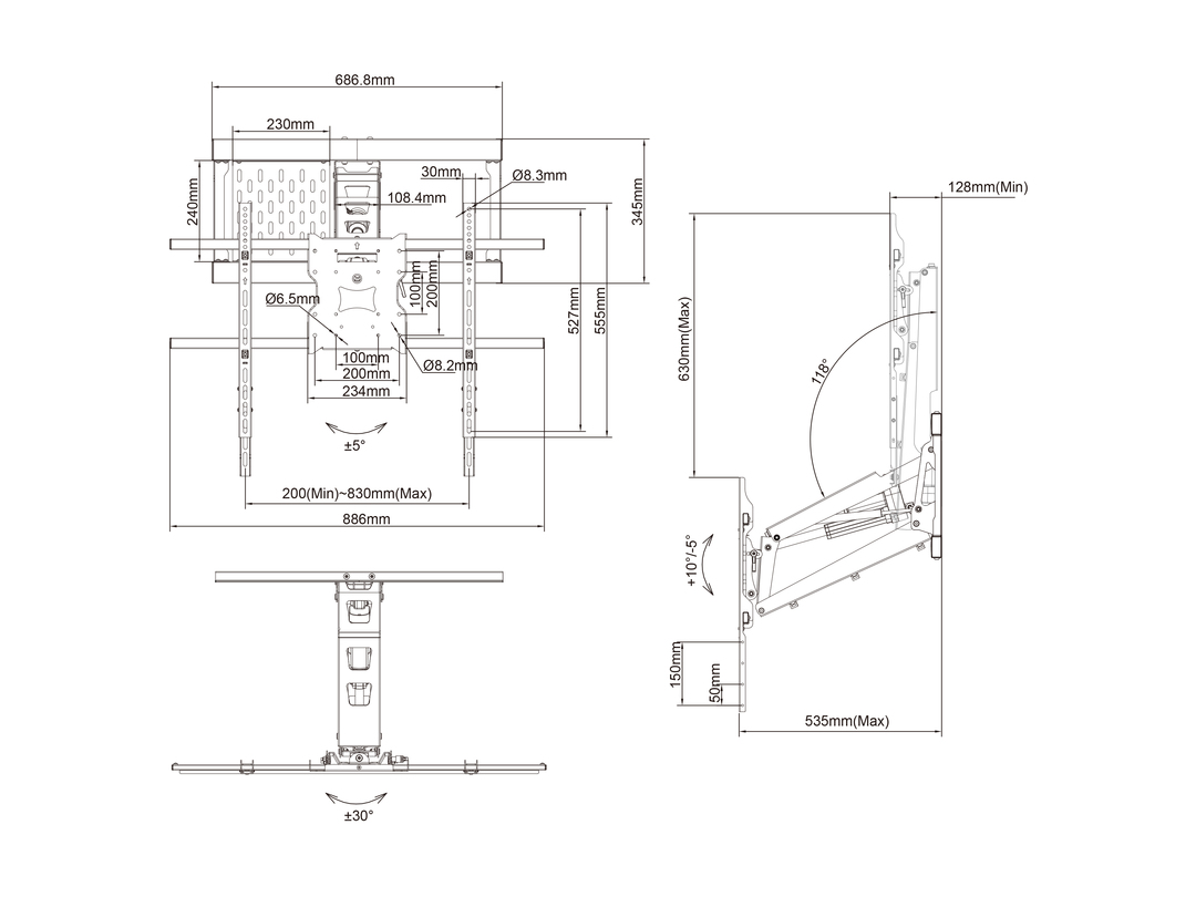 Wandhalter elektr, -86", max 45 kg, schwarz