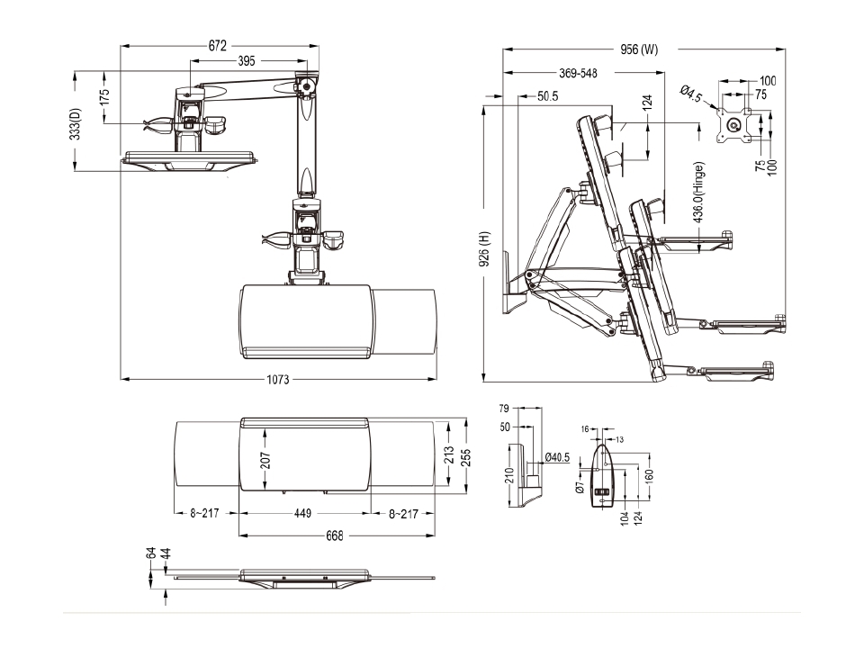 Höhenverstellbarkeit 124mm, Wandmontage,